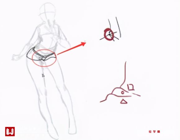 然后是胯,胯部因为受到屁股的支撑,所以不会有什么褶皱波。