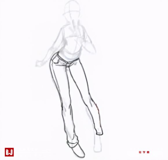 据同样的道理可以描出另外一条裤腿。这样裤子的部分就算完成了。