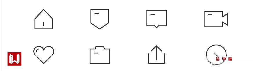 与上一种较为类似,但没有连贯度的要求。在线形图标基础上面,寻找一个缺口来打破 「全包边图标」 的沉闷感,使得图标具有透气性和线条的变化。缺口的位置尽量保持统一的方向及大小,另外需要控制开口个数避免过多导致图标外形过于零碎。