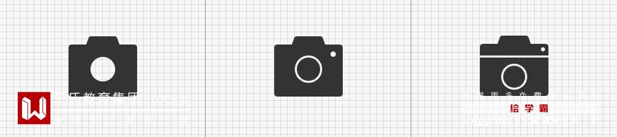 设计面性图标时,对于多余细节的管理也很重要。随着细节的增加,块面切割过多,会使得整体图标变得过于零碎(如下右图)。保持简约的设计提高图标的识别度,在关键的特征细节上做补充(如下中间图的相机闪光灯)。