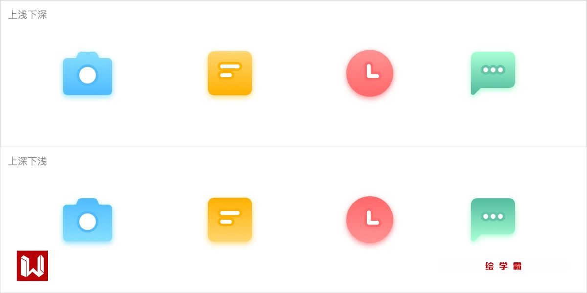 微弱的渐变提升了图标的质感。渐变的方向会影响整体图标的视觉效果,因此可以根据不同设计的需要进行调整。如下图案例: