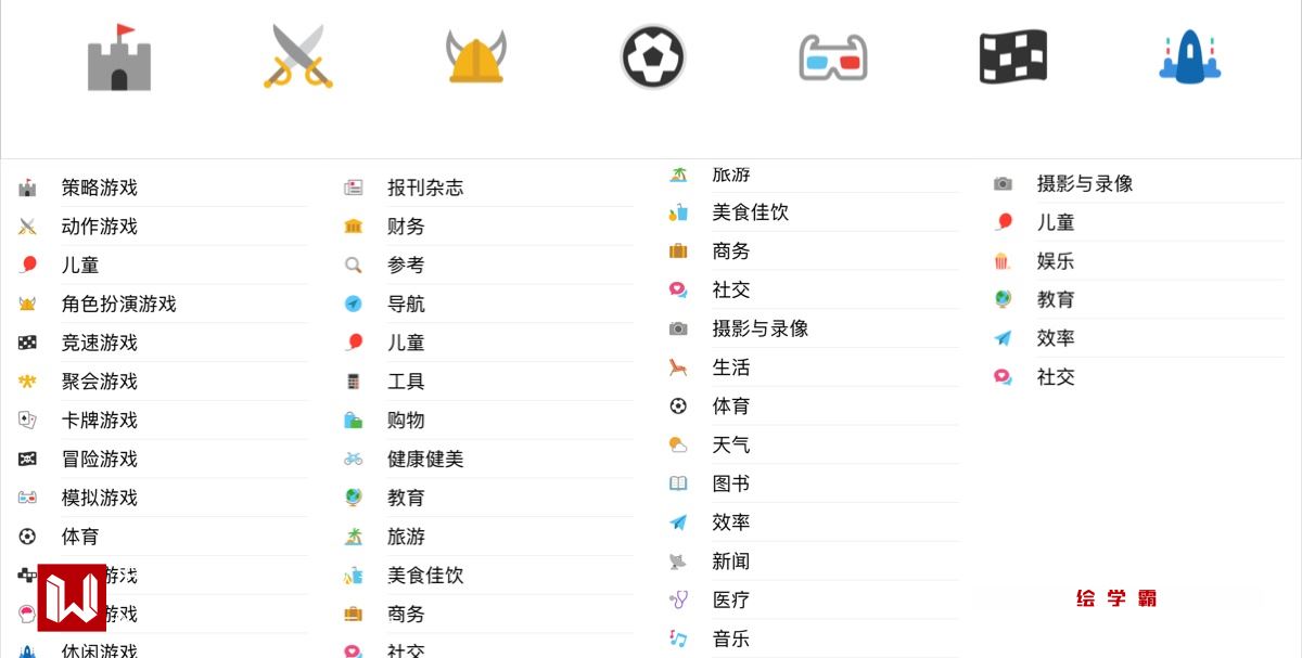 APP Store 游戏和新APP界面下的类别列表图标