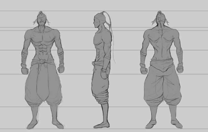 第二步我们需要构建的是人体的结构 清楚的交代肌肉的穿插和走向 并且可以适当的设计出人物的发型甚至五官...